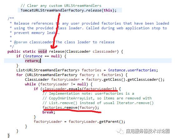 从源码结构上分析,一层套一层,反正和当前WebAppClassLoader是有关系的,那Tomcat的做法也很简单,就是将其干掉: