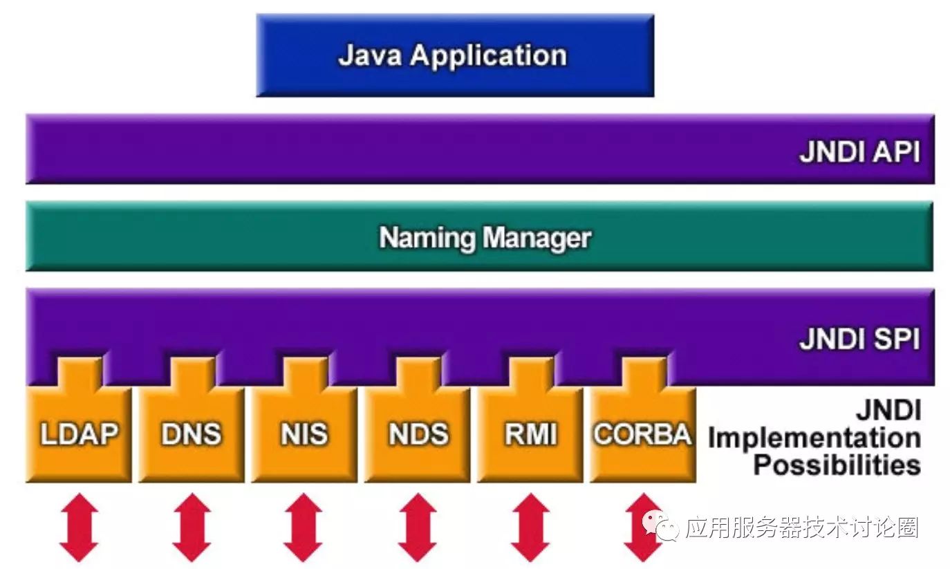 而javax.naming.spi是JNDI的实现层,可以有下图进行理解:
