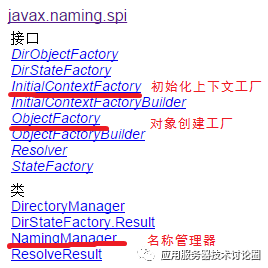 对于SPI来讲,JDK中的Naming默认提供了目录服务,从上图我们也可以看到,其实可以有n多种选择,这种选择主要就由javax.spi包来实现了: