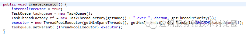 TaskQueue是队列,Thread工厂针对于创建的线程名称进行了一下修改,并且对于线程池的最大,最小,时间都进行了限定;