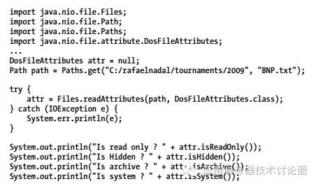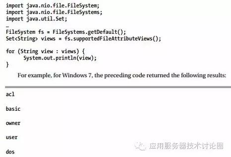 而在JAVA NIO2的java.nio.file.Attributes包中,使用View的机制,空前开放了对文件属性的各种读取,并且可以自定义属性,可谓是JAVA NIO2中文件IO的一大改进;