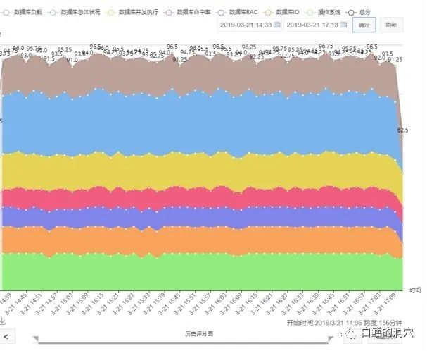 发现数据库总体状况丢分严重,另外数据库命中率与数据库IO两方面的指标也比较差。由于现场的DBA属于系统监控人员,不具备深度问题分析的能力,D-SMART系统的运维经验报警模块又没有明显的报警,于是,现场人员决定求助基石数据三线专家。将该时间段的“状态巡检报告”打包发送给三线专家后,三线专家通过对“状态巡检报告”的解读发现该状态出现是因为另外一套系统通过DBLINK远程访问本数据库,对本数据库上的一张大表进行了全表扫描,触发了Oracle的一个BUG导致,如果该问题不进行及时处置,系统的DFS HANDLE等待会越来越严重,系统的整体性能还会进一步下降。于是三线专家建议在相关表上创建索引,并在晚上选择可停机的窗口对数据库实例进行重启(此BUG在11.2.0.4上暂无补丁)。