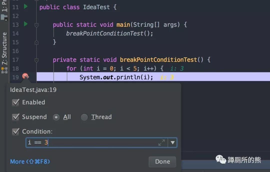 上图中,右击断点会弹出弹出框。当条件 i==3