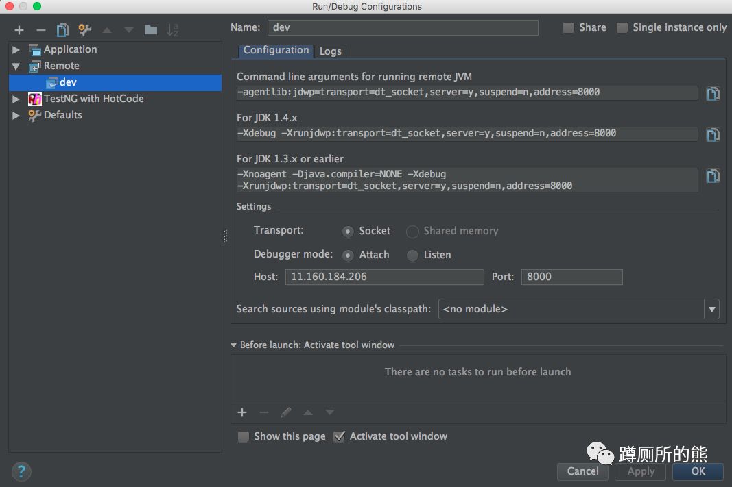 接着,打开Idea,在顶部靠右的地方选择”Edit Configurations…”,进去之后点击+号,选择”Remote”,没什么特殊的只需要修改 Host