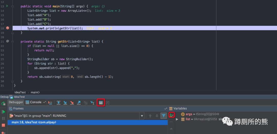窗口里的值在不断变化。这里变化的每一行其实对应的就是一次方法调用压栈的信息。而 DropFrame