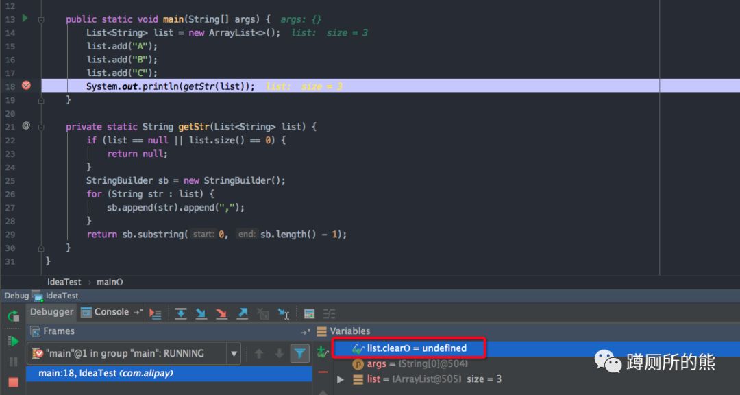 当执行到断点所在地,如果我们不想改代码但是想测试list为空的情况,这时候我们就可以临时改变list的值变为null。