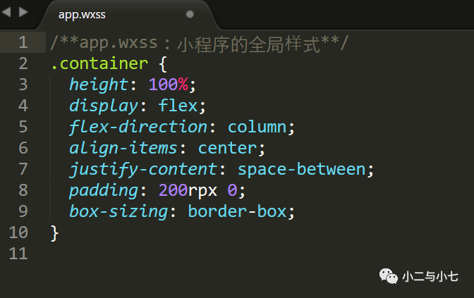(2)小程序中的wxss,具有css大部分的特性,打开index.wxss,删掉所有代码,为刚刚的view配置一个简单的样式。