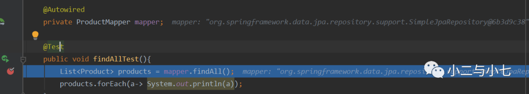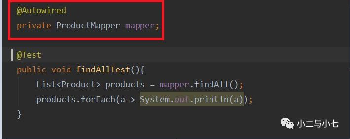 再看一下我们的测试代码,显然接口是不可能被实例化,那么这里Autowired注入了什么?