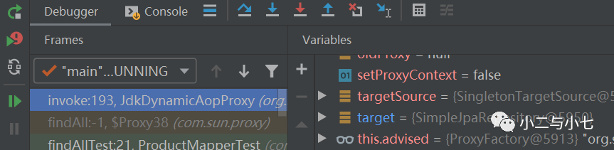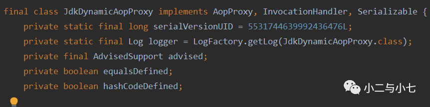 在IDEA的debug调试窗口可以看到这个JdkDynamicAopProxy,我们看一下它的源码(选中它右键-->jump to type source):