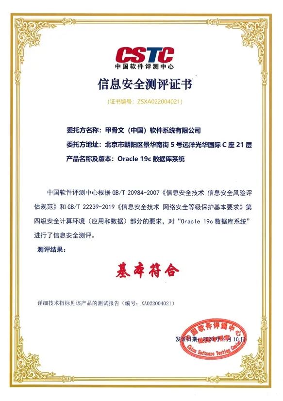 Oracle 数据库 19c 成功拿下等保2.0四级测评通过证书,这也进一步印证了甲骨文公司对国家和地区性信息安全法规的遵从,以及 Oracle 技术对于企业及政府部门的安全可靠性。