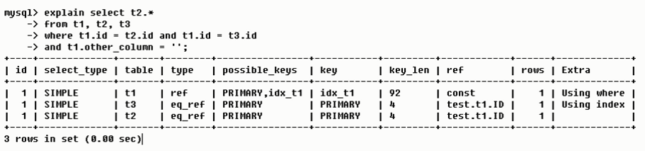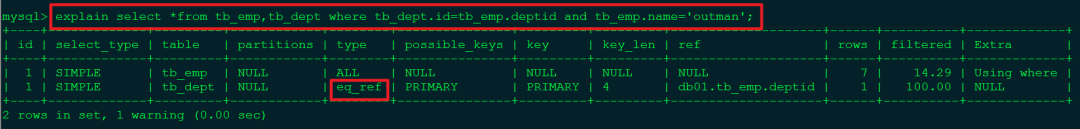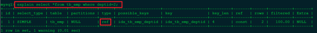ref,关联的字段,常量等值查询,显示为const,如果为连接查询,显示关联的字段。