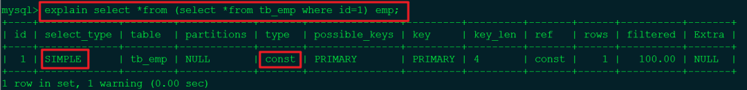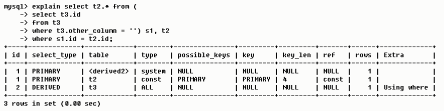 System:表只有一行记录(等于系统表),这是const类型的特列,平时不会出现,这个也可以忽略不计。