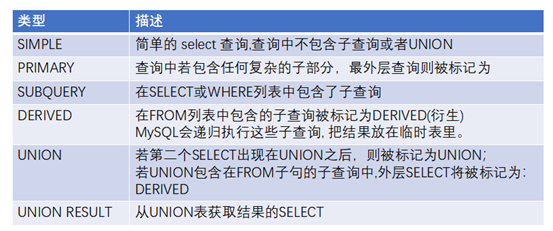 ID列:描述select查询的序列号,包含一组数字,表示查询中执行select子句或操作表的顺序;