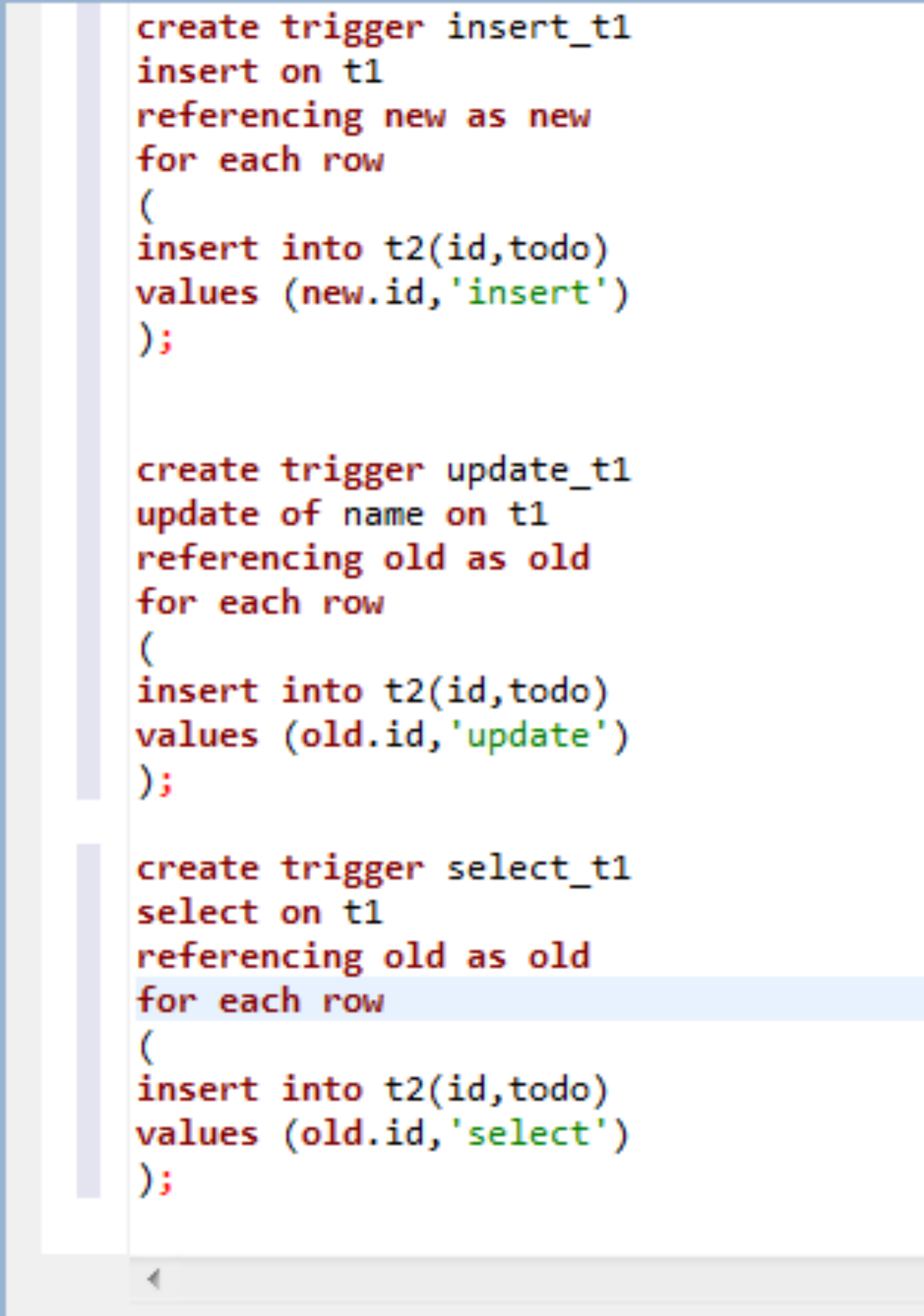 创建了3个触发器,分别是查询操作触发器,插入操作触发器,修改操作触发器