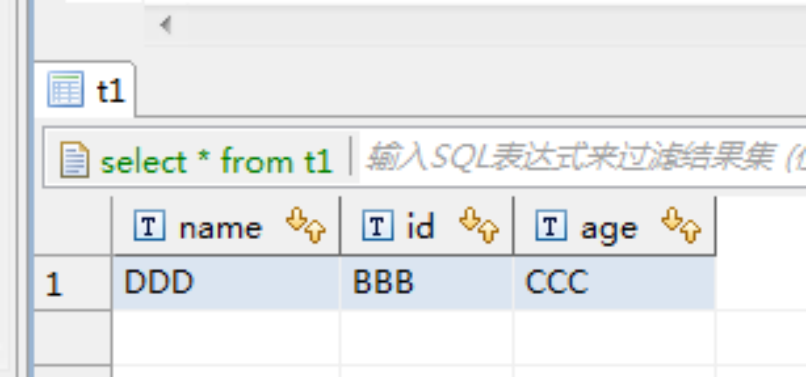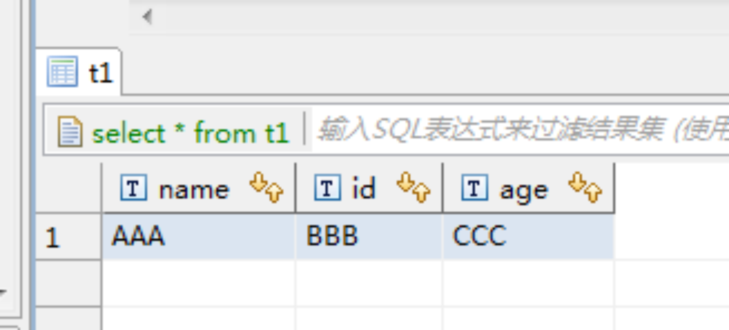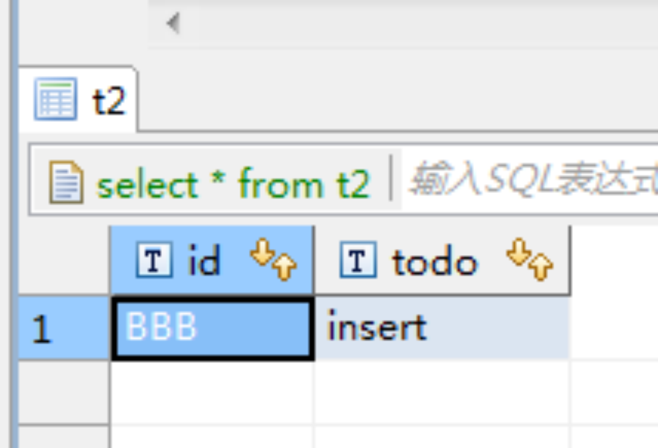 执行期待的结果,t1表中,插入一条记录,并且触发插入操作触发器,插入一条记录在t2日志表。