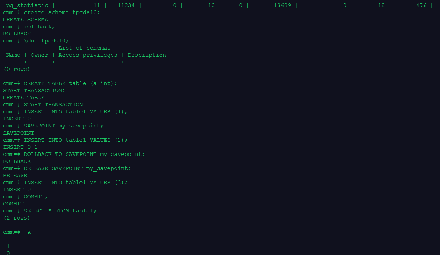 3.启动事务3,对表进行增删改查,并用到创建savepoint,回滚savepoint和删除savepoint