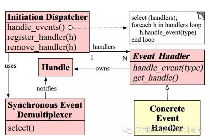 Event Handler接口就是对应的事件接口,ACE将这个Reactor的接口标准化了,供应用自己去实现自己的Event Handler;