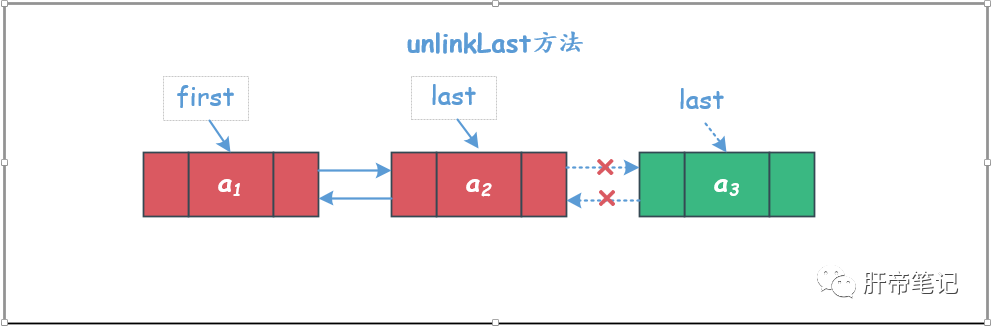 删除链表的最后一个元素其实就是调用unlinkLast方法。