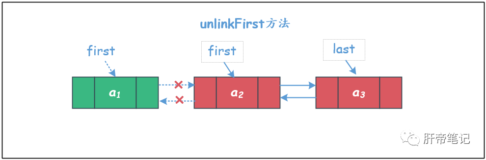 删除链表的第一个元素,就是调用unlinkFirst方法。