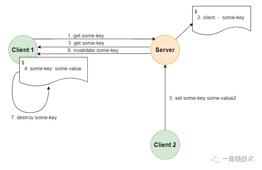 当客户端访问某个key时,服务端将记录key 和 client ; 客户端拿到数据后,进行客户端缓存; 这时,当key再次被访问时,key将被直接返回,避免了与redis 服务器的再次交互,节省服务端资源; 当数据被其他请求修改时,服务端将主动通知客户端失效的key; 客户端进行本地失效,下次请求时,重新获取最新数据。