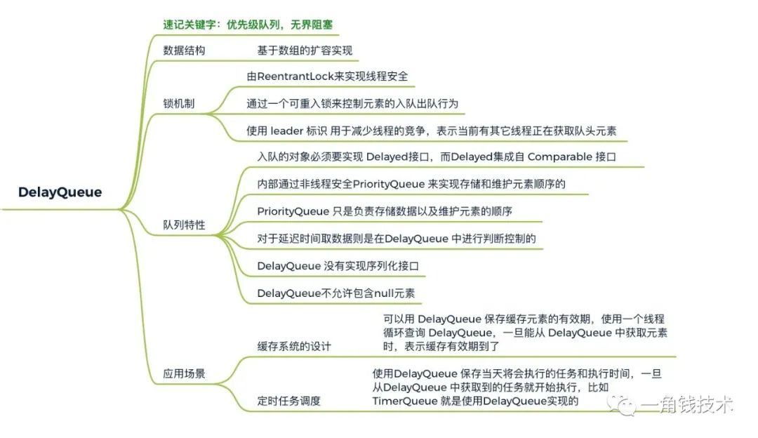DelayQueue 由优先级支持的、基于时间的调度队列,内部使用非线程安全的优先队列(PriorityQueue)实现,而无界队列基于数组的扩容实现。在创建元素时,可以指定多久才能从队列中获取当前元素。只有延时期满后才能从队列中获取元素。