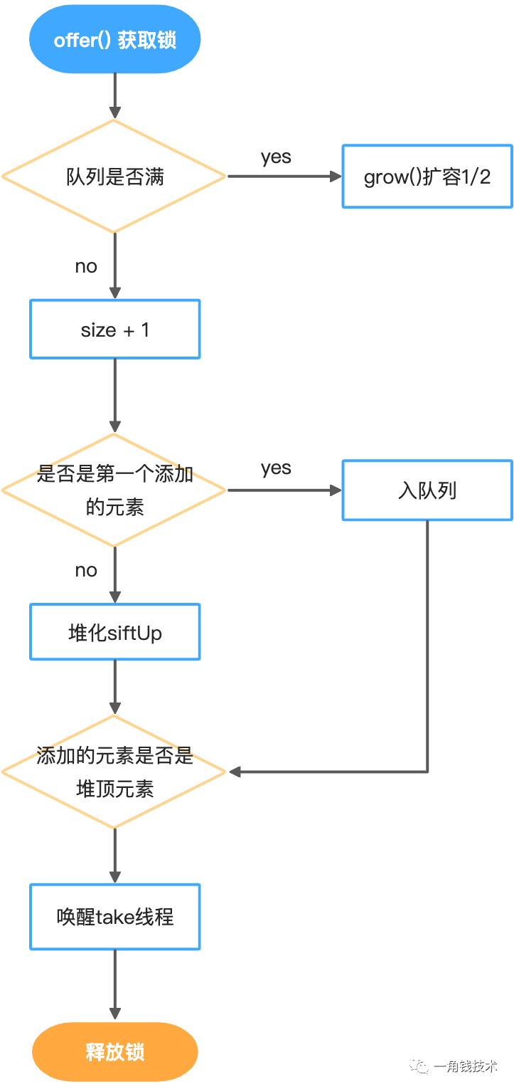 基本一样,核心数据结构是二叉最小堆的优先队列,队列满时会自动扩容,所以offer