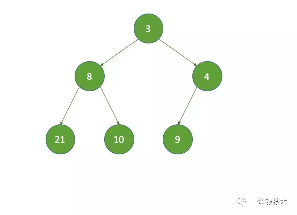 // 如果左子节点元素值大于右子节点元素值,那么右子节点才是较小值的子节点。