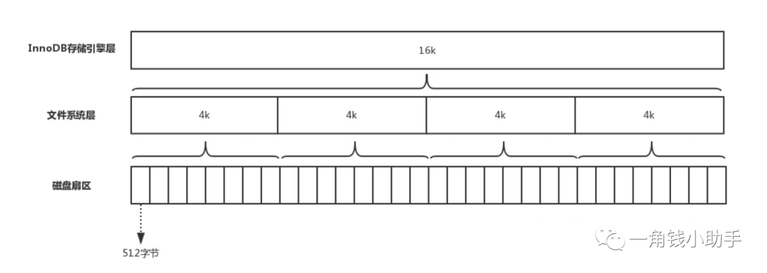 磁盘扇区、文件系统、InnoDB存储引擎都有各自的最小存储单元。