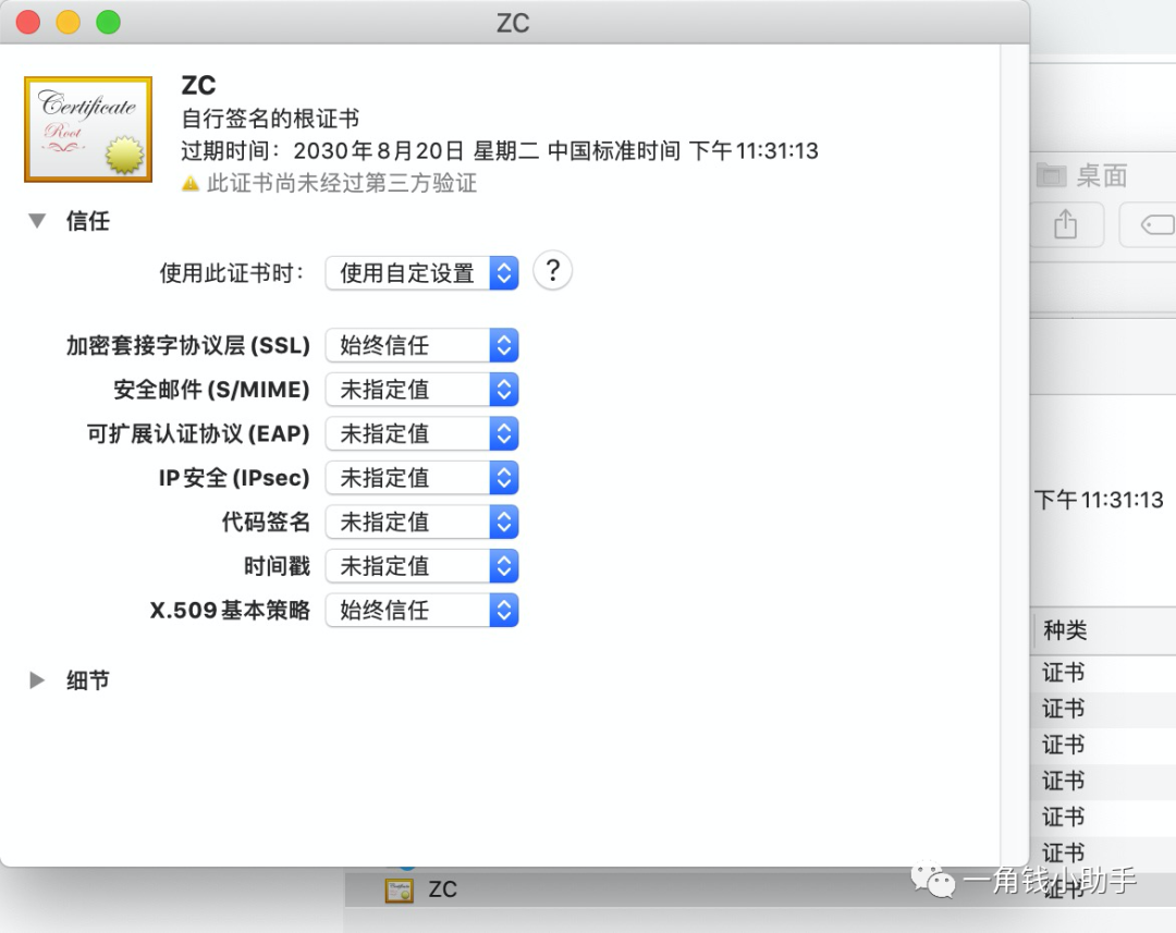 因为我的系统是Mac,这里记录的是Mac申请自签名的SSL证书,其他系统也类似,这里不再赘述。