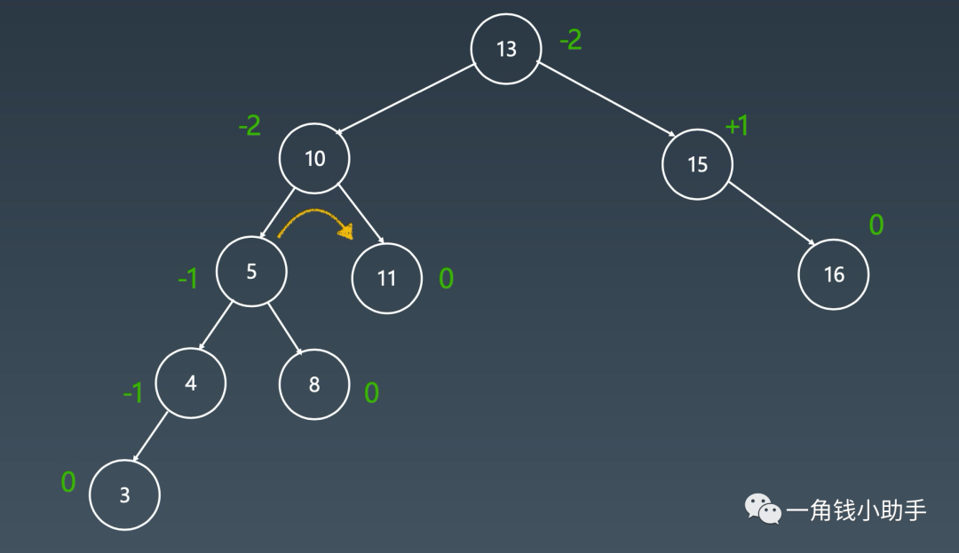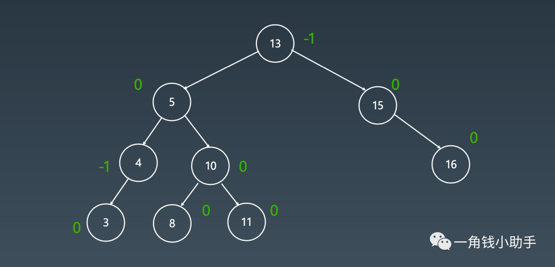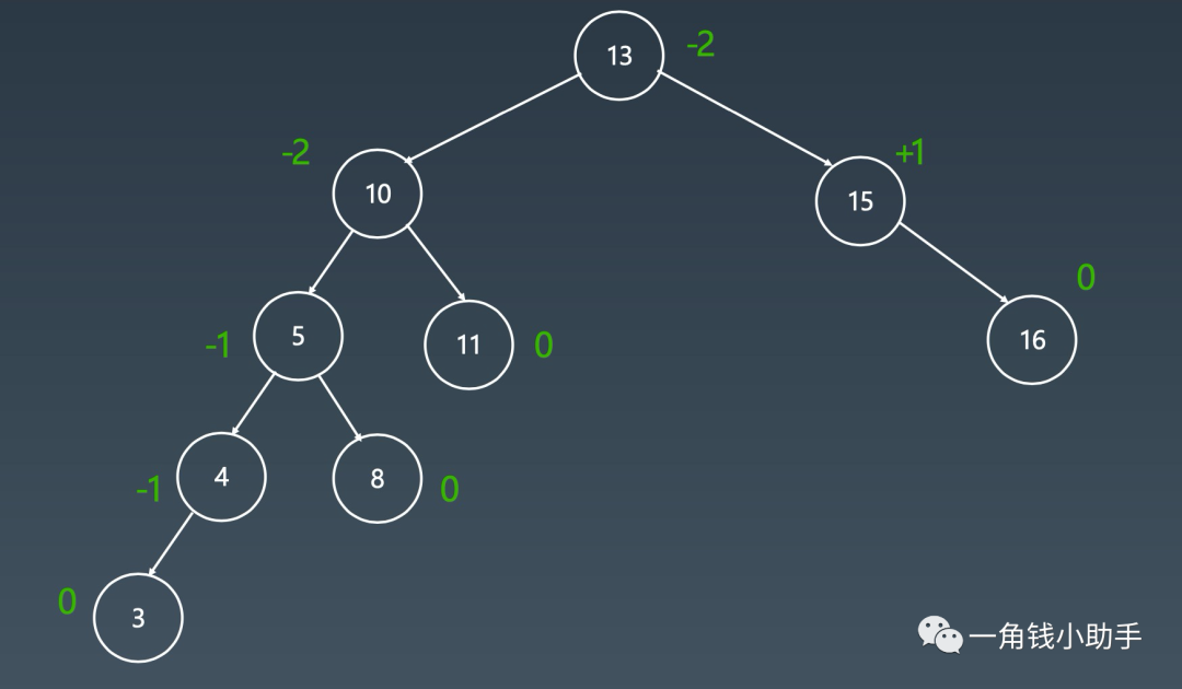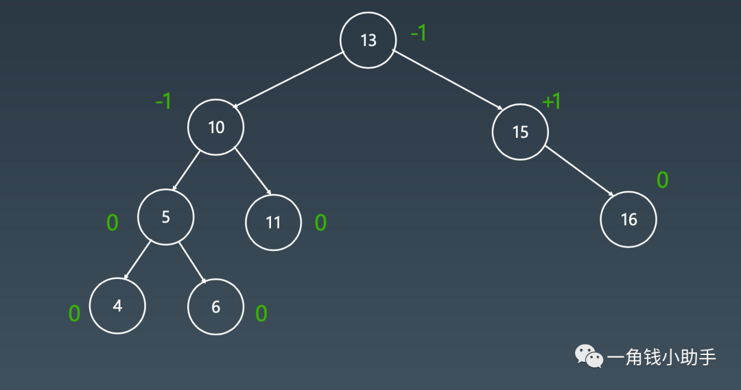 之间,所以保持平衡因子不超过绝对值 1,就变成来一颗二叉搜索树。