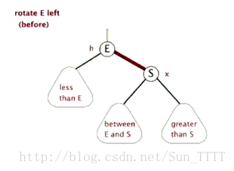 有时候这个结点本身右所谓的子树情况,它要进行左右旋和右左旋应该怎么办?这个时候要进行右旋操作的时候,E 结点移上来,S 结点往下拿了之后,E 的右子树要挂在 S 的左子树下去。