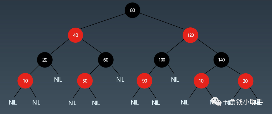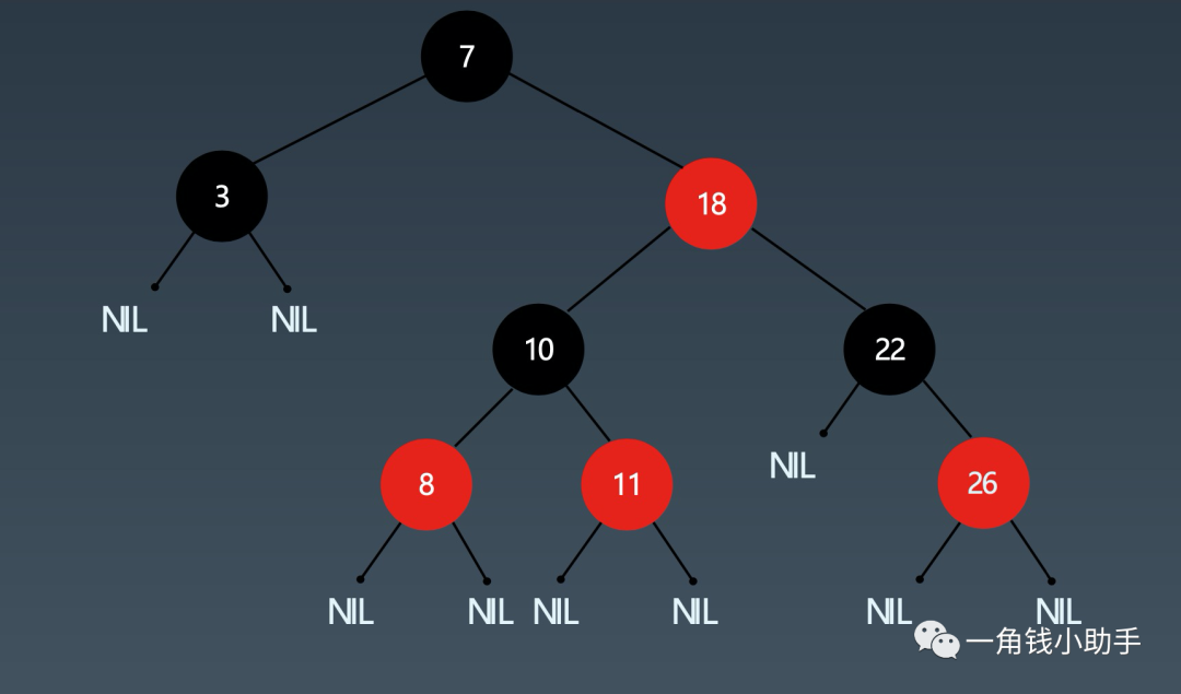 根结点是黑色 每个结点要么是红色,要么是黑色 每个叶子结点(NIL 结点,空结点)是黑色的 不能有相邻的两个红色结点 从任意结点到其每个叶子结点的所有路径都包含相同数码的黑色结点。