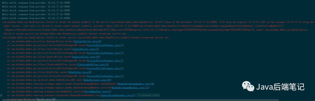 从TpsLimitFilter的源码中可以看到,因为是扩展点自动激活配置,首先TpsLimitFilter只对provider端有效,其次provider url的需要包括tps=xxx这个配置才能生效。