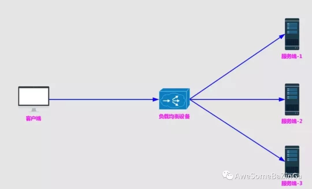 硬件负载均衡的设备或是软件负载均衡的软件模块都会维护一个下高可用的服务端清单,通过心跳检测来剔除故障的服务端节点以保证清单中都是可以正常访问的服务端节点。当客户端发送请求到负载均衡设备的时候,该设备按某种算法(比如线性轮询、按权重负载、按流量负载等)从维护的可用服务端清单中取出一台服务端地址,然后进行转发。