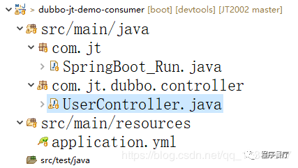 server:port: 9001dubbo:scan:basePackages: com.jtapplication:name: consumer-user #定义消费者名称registry: #注册中心地址address: zookeeper://192.168.126.129:2181?backup=192.168.126.129:2182,192.168.126.129:2183