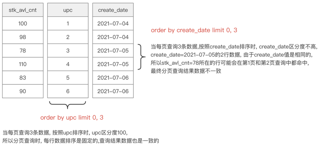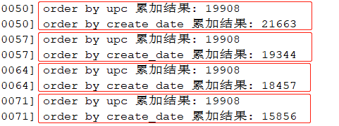 从结果中可以看到,order by UPC 排序后累加的结果是一致的,4次结果都是19908,order by create_date 每次的结果都不相同21663,19344,18457, 15856,那么是什么原因导致的使用 order by create_date 排序,每次查询结果都有差异呢?
