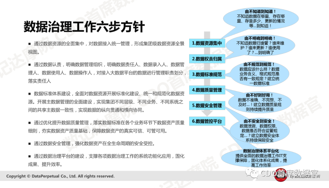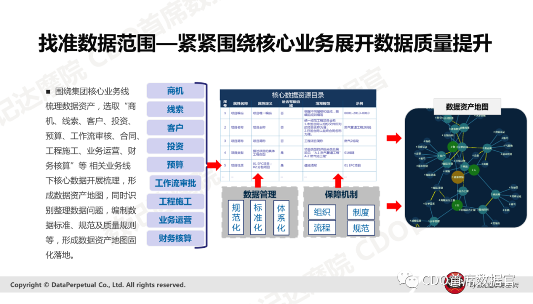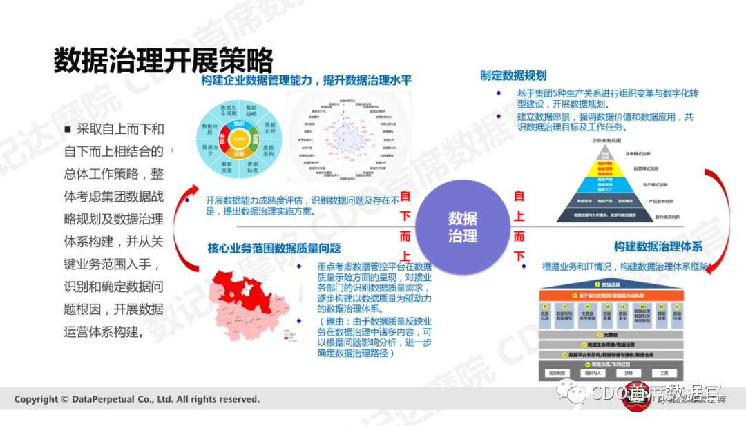 下面通过介绍某集团数据治理工作开展的数据质量提升最佳实践,对组织持续获得数据资产价值的保障能力方面,提出数据质量管理建设性落地解决方案。探讨获得高质量数据和可靠信息的步骤、方法与技术,确保高质量的数据产品和服务支撑组织决策和行动。