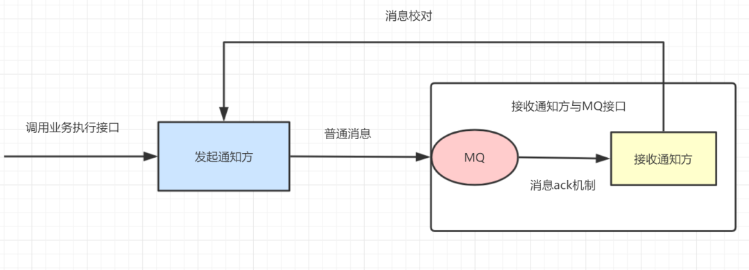 接收通知方收到消息后,处理完业务,回应 ACK。