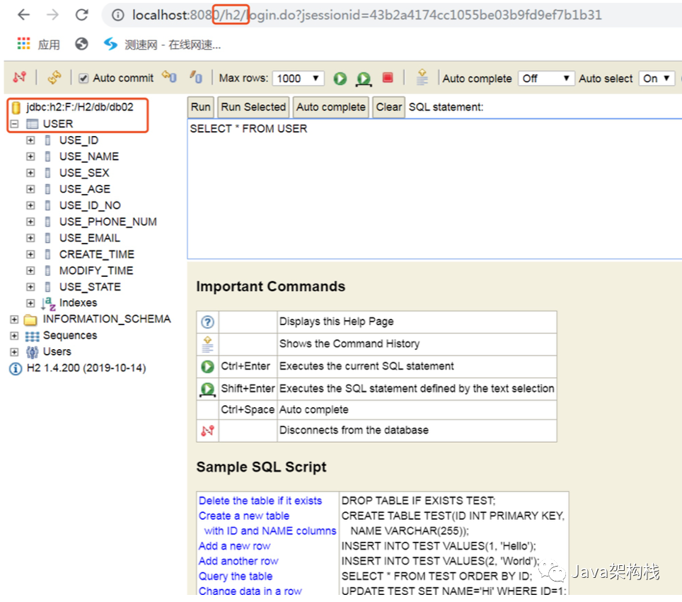 这就意味着我们在jdbc:h2:F:/H2/db/db02路径上创建了一个db02数据库。