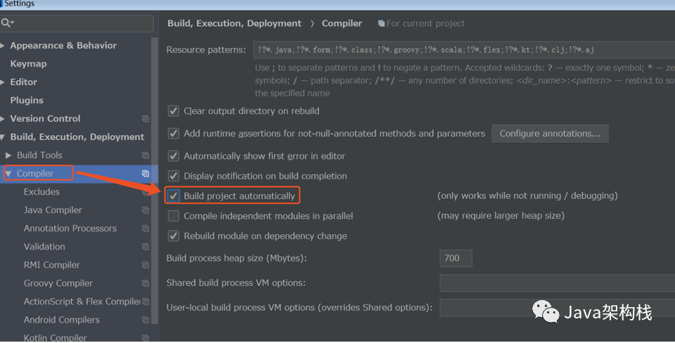 接下来我们需要打开Intellij IDE的项目自动构建功能,请按照如下配置开启。