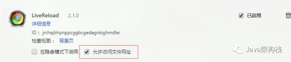 我们可以选择安装一个浏览器上运行的livereload插件。在chrome浏览器中下载livereload插件,将其安装到chrome扩展程序中,并选中允许访问文件网址。