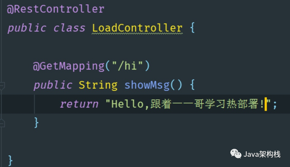 以上的配置设置完毕之后,我们就可以进行热加载功能的测试了,看看我们的配置是否有效。你可以随意编写一个Controller,效果如下: