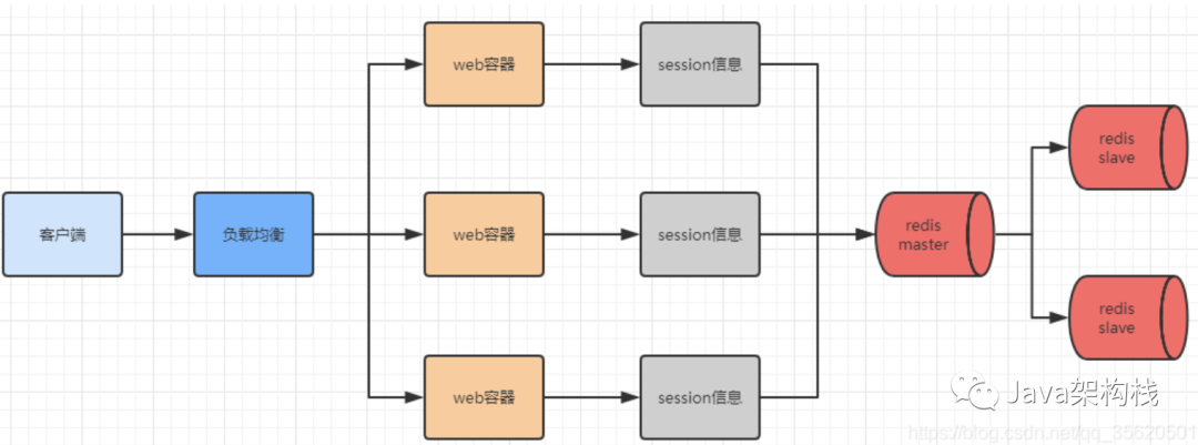 在传统的单服务架构中,一般来说,如果只有一个服务器,就不存在 Session 共享问题。但是在分布式/集群项目中,Session共享 则是一个必须面对的问题,先看一个简单的架构图: