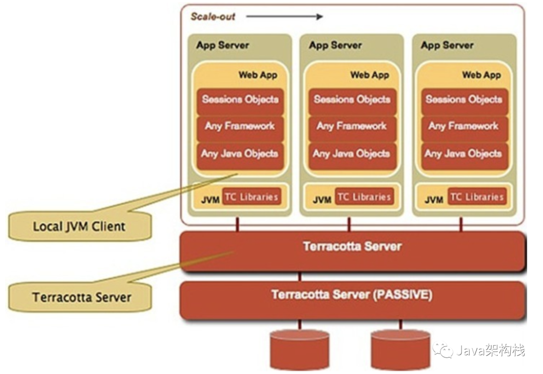 Terracotta的基本原理是,对于集群间共享的数据,当在一个节点发生变化的时候,Terracotta只把变化的部分发送给Terracotta服务器,然后由服务器把它转发给真正需要这个数据的节点,这可以看成是对第二种方案的优化。