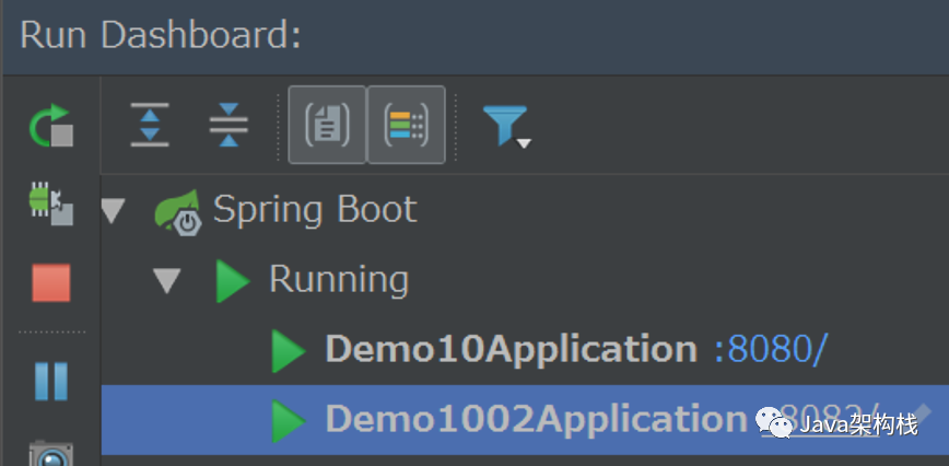 这种方式适合于在开发阶段进行项目的启动,我们只需要在run dashboard中分别启动两个入口类即可。