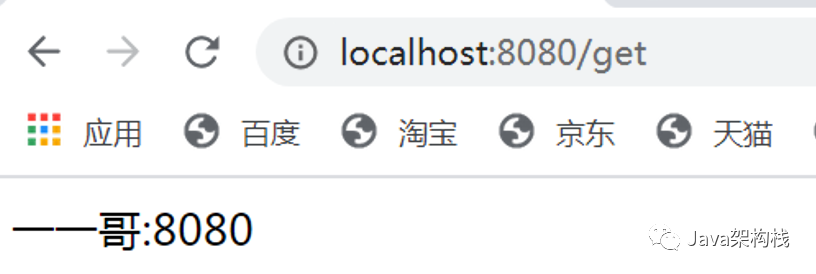 然后我们再访问:http://localhost:8080/get接口,可以看到如下效果: