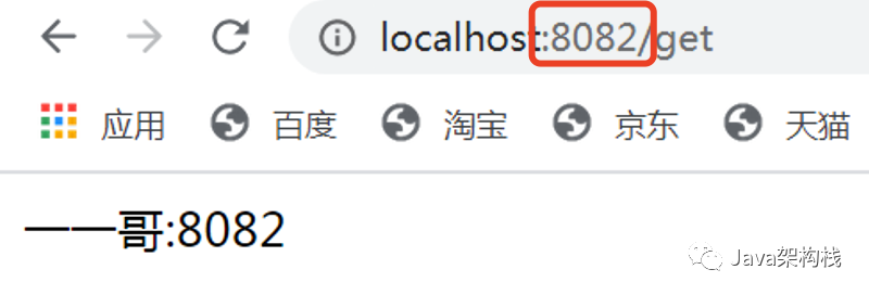 我们再访问http://localhost:8082/get接口,可以看到如下效果: