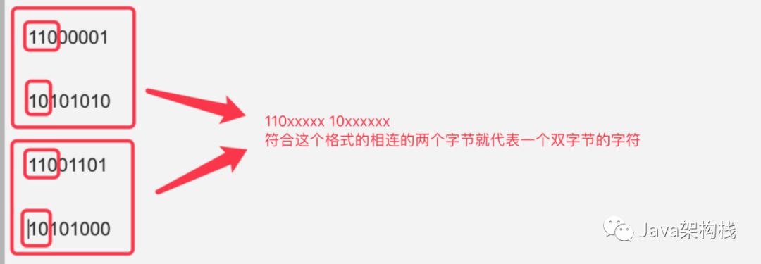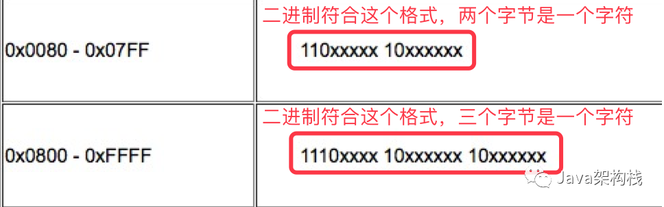 (3)如果第1个字节的前4位是1110,第2个字节的前2位是10,第3个字节的前2位是10,符合这个规律的连续相连的三个字节就代表一个三字节的字符。