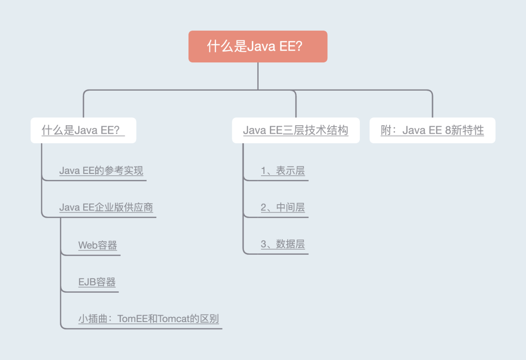 本文我尝试为你介绍什么是Java EE这个原始问题,通过图示展示出Java EE所处的位置。Web容器和EJB容器均属于Java EE技术体系,但是是有区别和侧重点的。