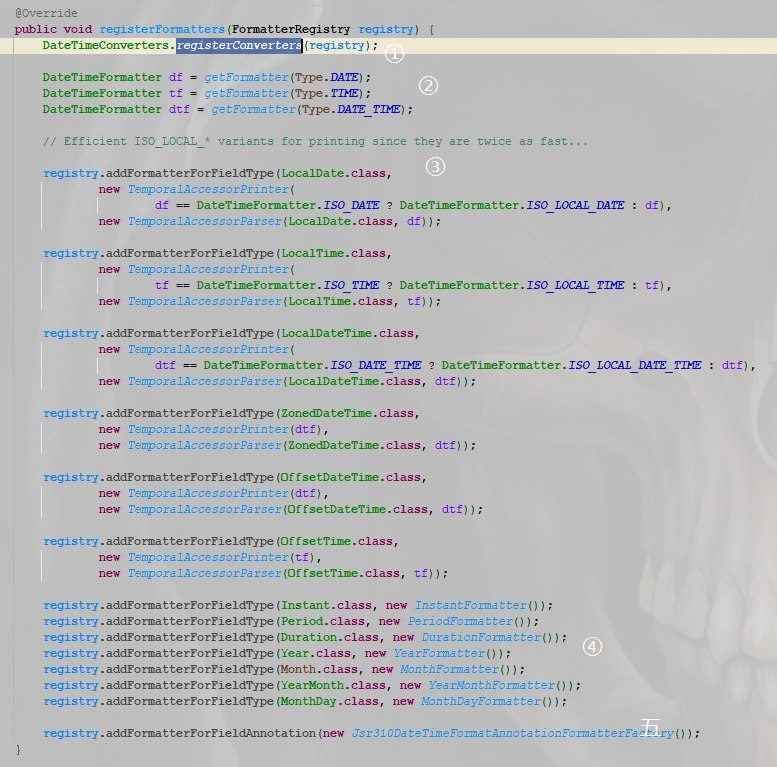 内部必然也调用了DateFormatterRegistrar.addDateConverters(registry)喽,感兴趣可自己去瞅瞅确认下